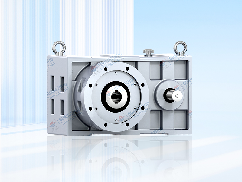 本產品是為塑料、橡膠單螺桿擠出機設備配套設計的專用齒輪傳動裝置。齒輪類零件采用高強度合金鋼制造,齒輪經滲碳、淬火、高精度磨齒工藝加工,齒輪精度等級為6級(GB10095),齒面硬度HRC58~62。在空心輸出軸前端配置有大規格推力軸承,承受螺桿工作時產生的軸向推力。
